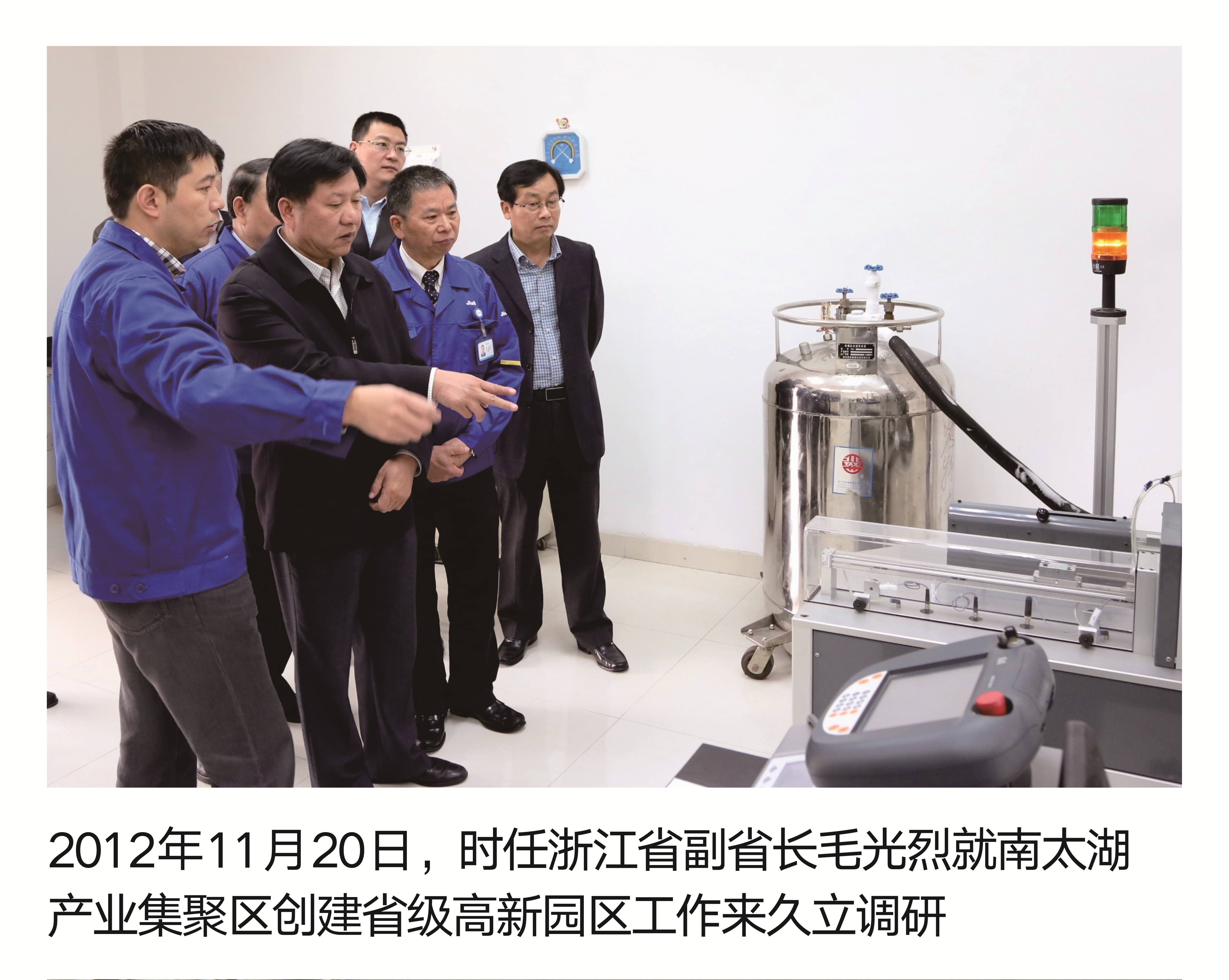 2012年11月20日,时任浙江省副省长毛光烈就南太湖工业集聚区建设省级高新园区事情来J9九游会调研